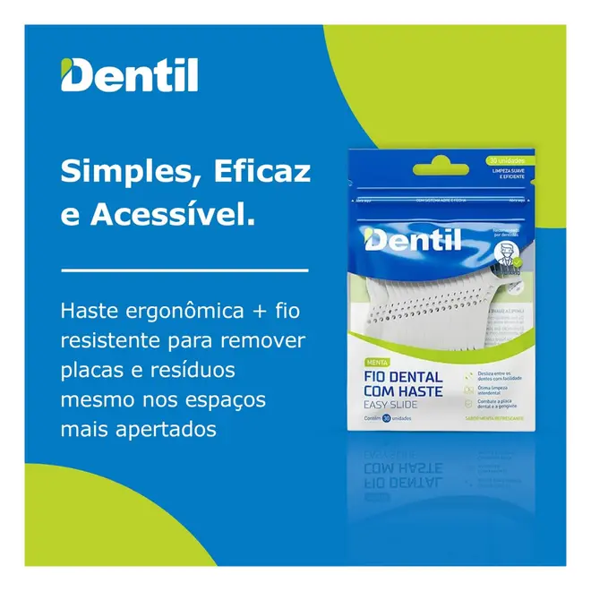 O Fio Dental com Haste Dentil Pro Easy Slide foi desenvolvido para facilitar a higienização entre os dentes, proporcionando limpeza eficiente mesmo em áreas de difícil acesso.