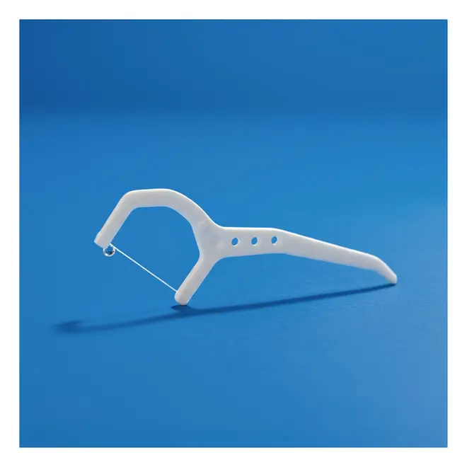 Possui haste anatômica que oferece maior controle durante o uso, além de fio resistente que desliza suavemente entre os dentes, auxiliando na remoção da placa bacteriana e resíduos alimentares.