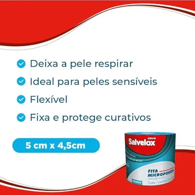 Fita Microporosa Hipoalergênica Branca Salvelox 5cm X 4,5m