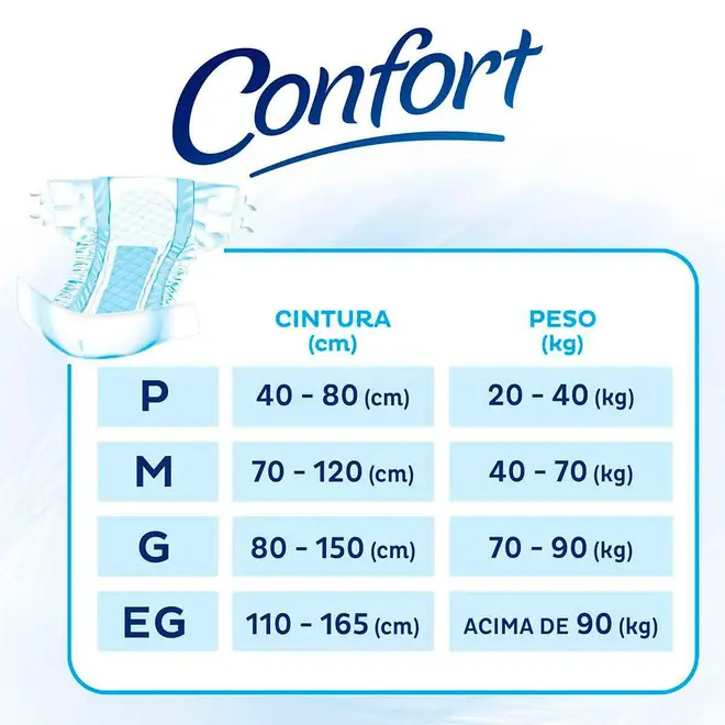 Tena Confort é uma fralda descartável e hipoalergênica indicada para incontinência urinária ou fecal de moderada a severa, pós-parto e pós-operatório.