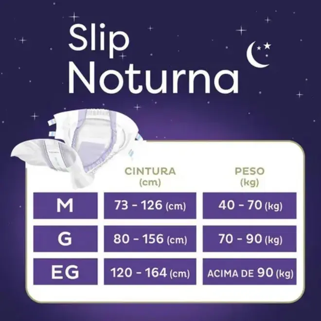 A fralda geriátrica Tena Slip Noturna EG foi desenvolvida para oferecer máxima proteção durante o período de descanso. Com alta capacidade de absorção e tecnologia avançada, mantém a pele seca e protegida, garantindo conforto e segurança durante toda a noite.