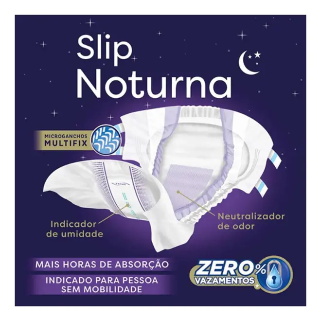 A fralda geriátrica Tena Slip Noturna foi desenvolvida para oferecer máxima proteção durante toda a noite. Indicada para incontinência severa, proporciona segurança, conforto e pele mais seca, sendo ideal para usuários com pouca ou nenhuma mobilidade.