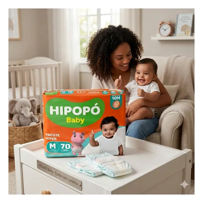 A Fralda Hipopó Baby foi projetada para oferecer conforto e proteção superior ao bebê, mantendo-o sequinho por muito mais tempo. Com o Pacote Hiper, você garante um excelente custo-benefício para o cuidado diário, utilizando um produto dermatologicamente testado e hipoalergênico, ideal para a pele sensível da criança.