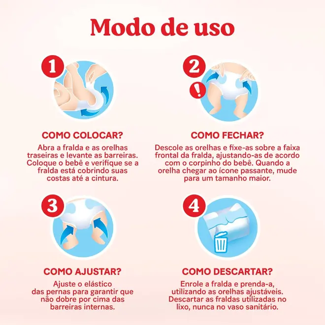 2 VEZES MAIS PROTEÇÃO NOTURNA: Nossas fraldas oferecem uma barreira avançada que proporciona o dobro da proteção durante a noite, mantendo o bebê confortável e seco até a manhã;
