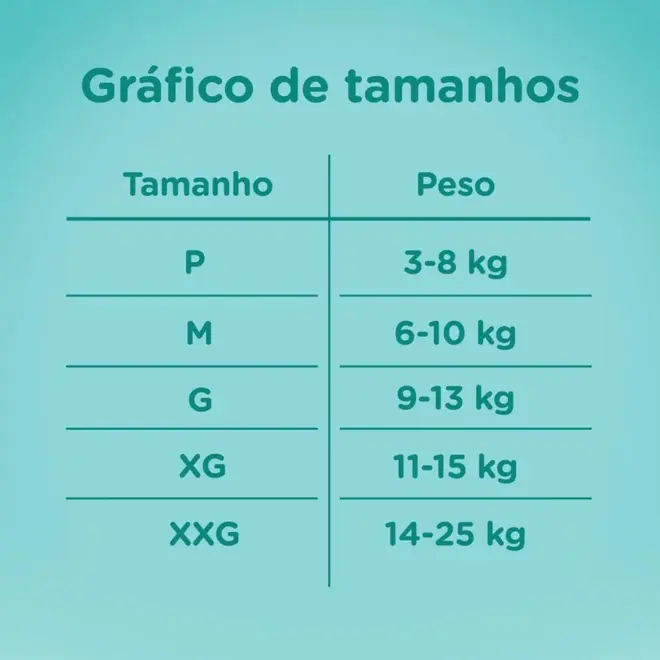 - Indicado para bebês de aproximadamente 9 a 13 kg (tamanho G)