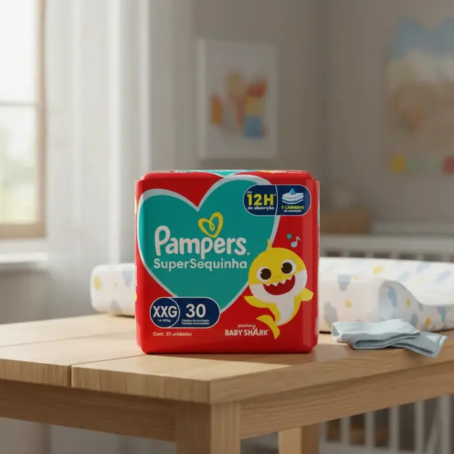A Pampers Supersequinha XXG foi feita para manter o bebê seco e protegido por mais tempo, evitando vazamentos e garantindo conforto no dia a dia. Com canais extra-absorventes que distribuem melhor a umidade e barreiras reforçadas, ajuda a manter a pele longe do xixi, proporcionando mais tranquilidade para os pais e menos trocas ao longo do dia.
