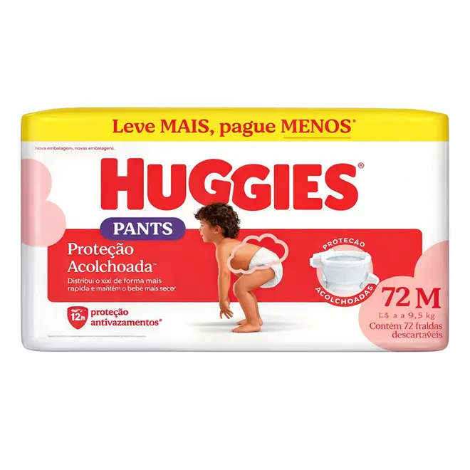 Conta com proteção acolchoada, que distribui o xixi de forma mais rápida e uniforme, mantendo o bebê sequinho por até 12 horas, além de barreiras antivazamento que ajudam a evitar escapes.