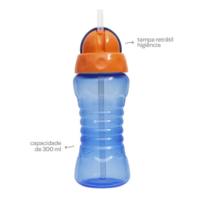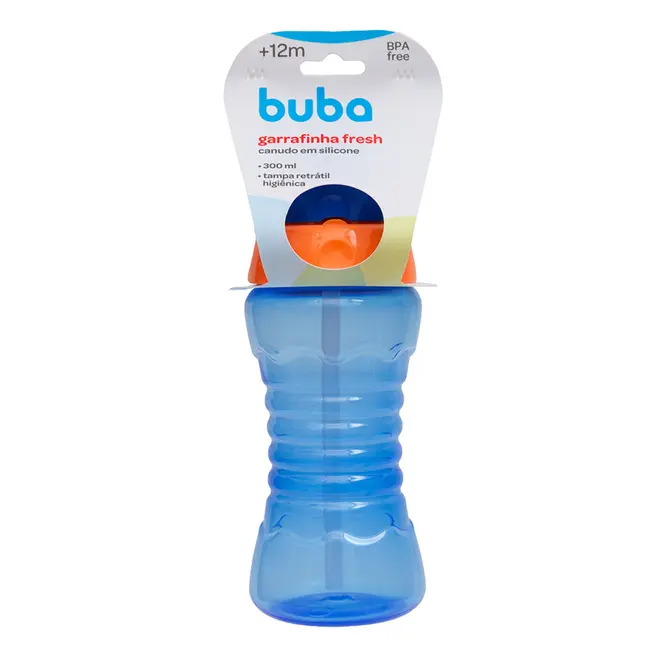 Garrafinha Fresh Infantil Buba Canudo de Silicone Retrátil e Tampa Higiênica Protetora