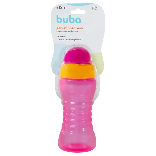 Garrafinha Fresh Infantil Buba Canudo de Silicone Retrátil e Tampa Higiênica Protetora