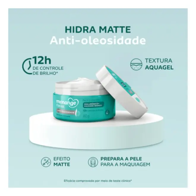 O Gel Creme Hidratante Facial Monange Hidra Matte Anti-Oleosidade foi desenvolvido para oferecer hidratação equilibrada enquanto controla a oleosidade da pele.
