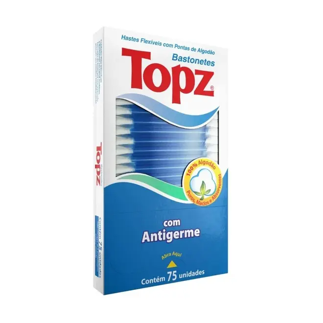 As Hastes Flexíveis Topz, conhecidas como bastonetes, são desenvolvidas para oferecer cuidado e higiene para toda a família. Suas pontas são confeccionadas em 100% puro algodão, garantindo um toque puros, macios e altamente absorventes.