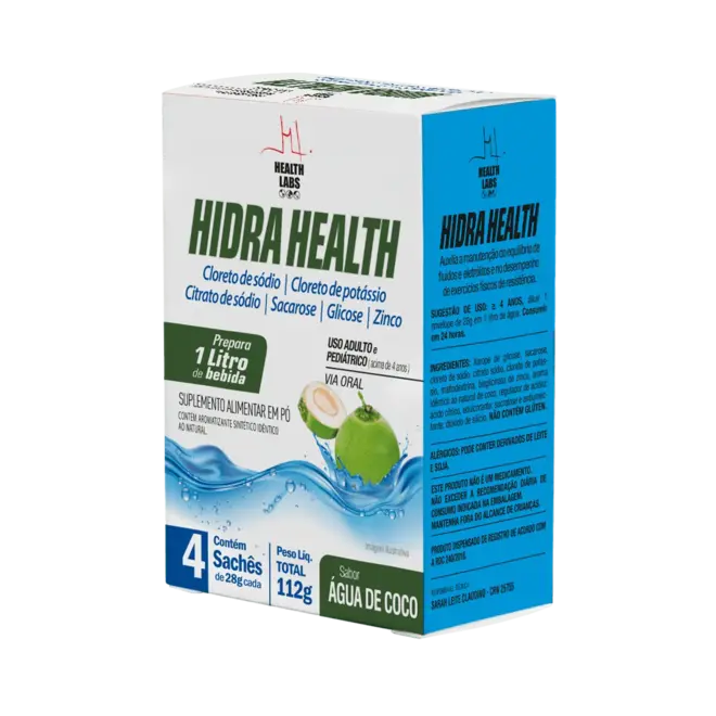 O Hidra Health Guaraná Health Labs 4 sachês de 28g é um suplemento formulado para hidratação eficiente e reposição de eletrólitos, aliado ao efeito natural energizante do guaraná.