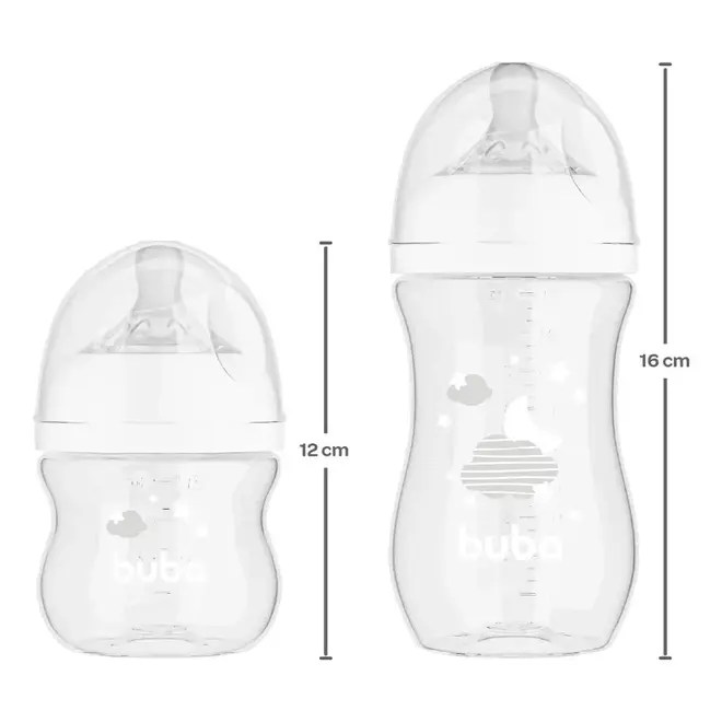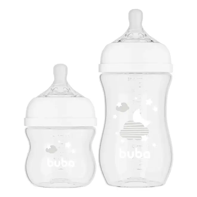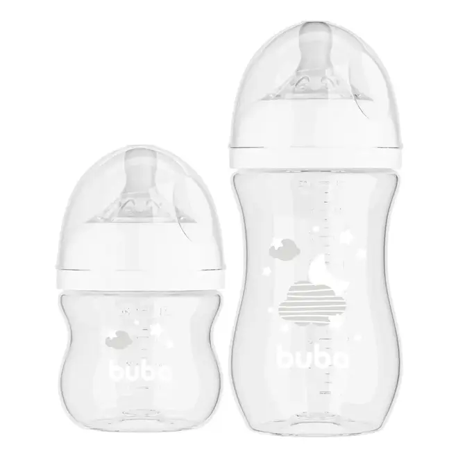 Kit 2 Mamadeiras Buba Easy Flow Anticólica Nuvem 120ml e 270ml