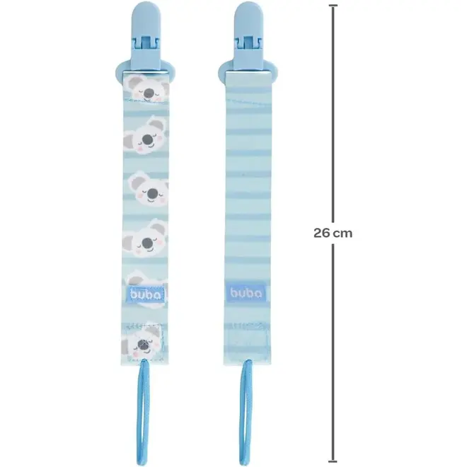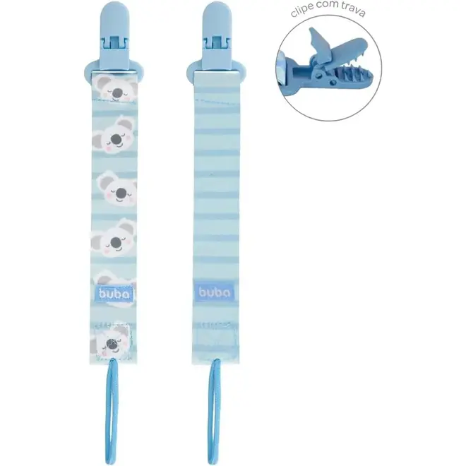 • Kit 2 Prendedores de Chupeta Buba Com Clip Trava Coala Azul