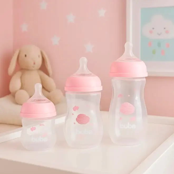 • Kit 3 Mamadeiras Buba Easy Flow Anticlica Nuvem Rosa
