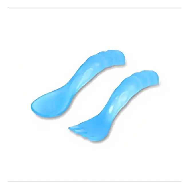 Adicionar o alimento e utilizar os talheres para alimentar o bebê ou estimular que ele se alimente sozinho.