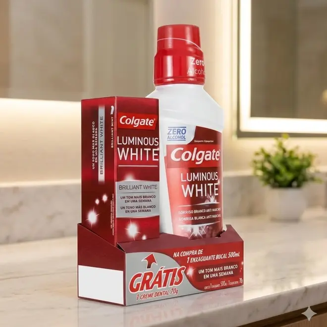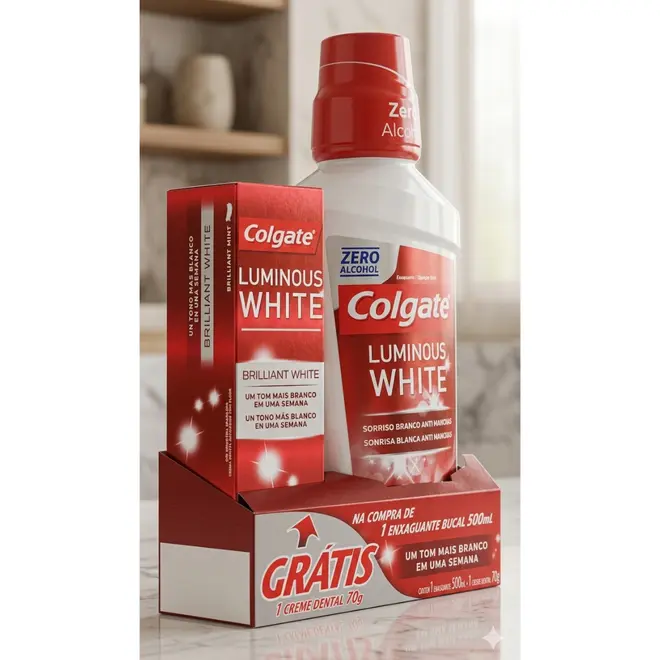 Kit Antisséptico Bucal Colgate Luminous White 500ml + Creme Dental 70g Grátis