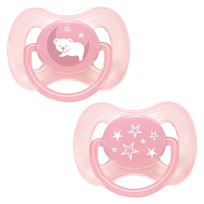 Kit 2 Chupeta Comfort Buba Tamanho 1 Ursinho/Estrela Rosa