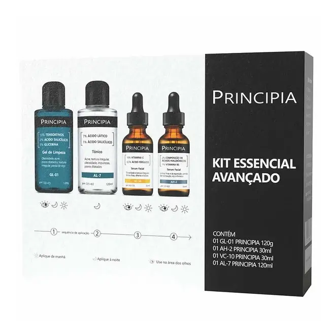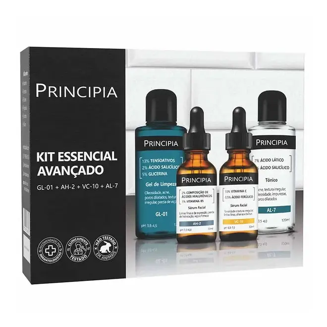O Kit Principia Essencial Avançado - Gel de Limpeza + Tônico + 2 Séruns é uma poderosa combinação de produtos desenvolvidos para cuidados avançados com a pele.