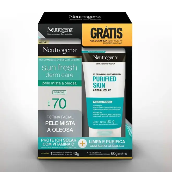 Kit Prot Solar Neutrogena Sun Fresh Facial Fps 70 40G E Gel Limpeza Purif Skin 60G