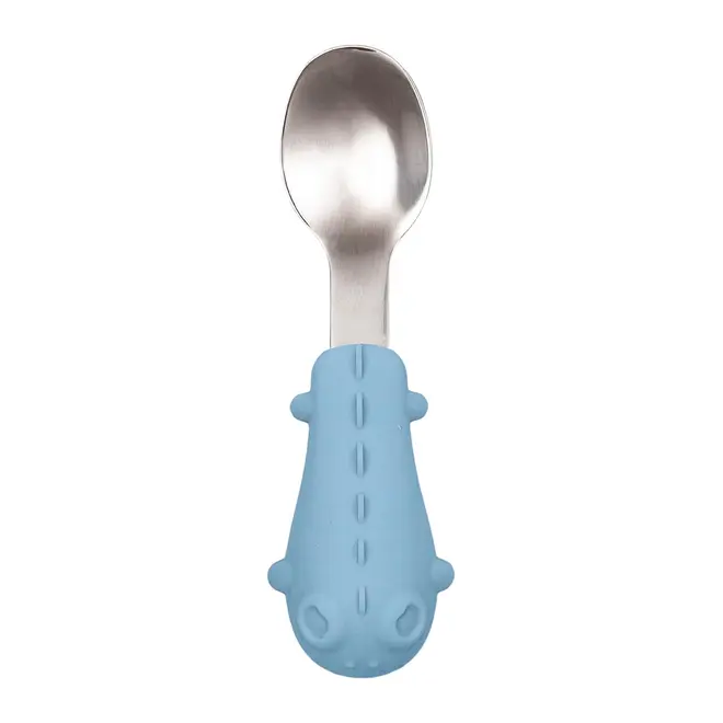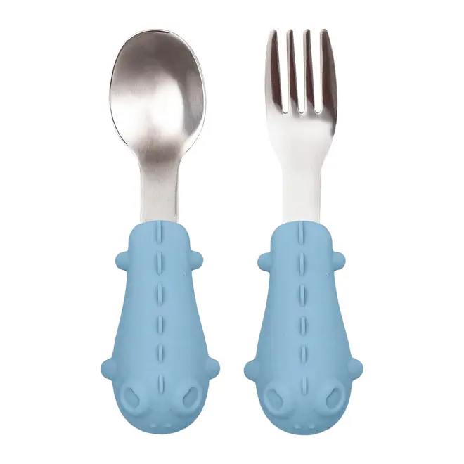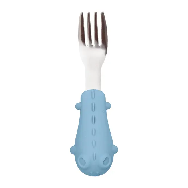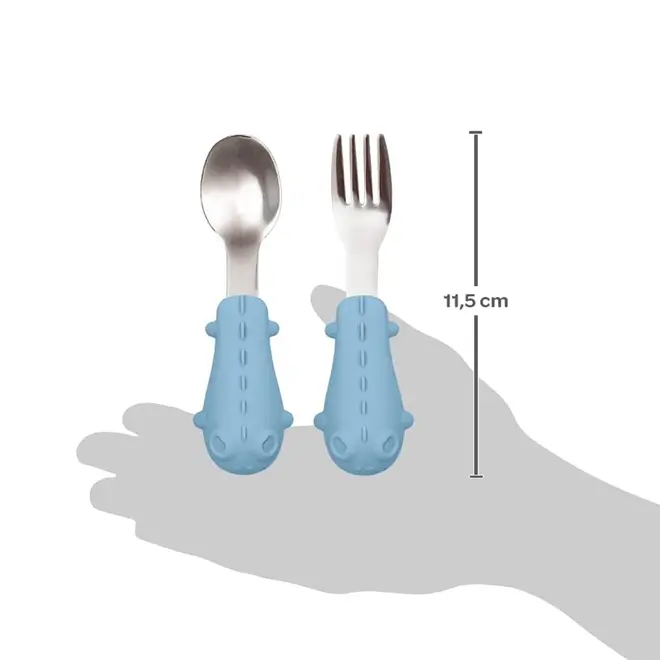 Kit Talheres Colher e Garfo Cabo em Silicone Buba Dino Azul