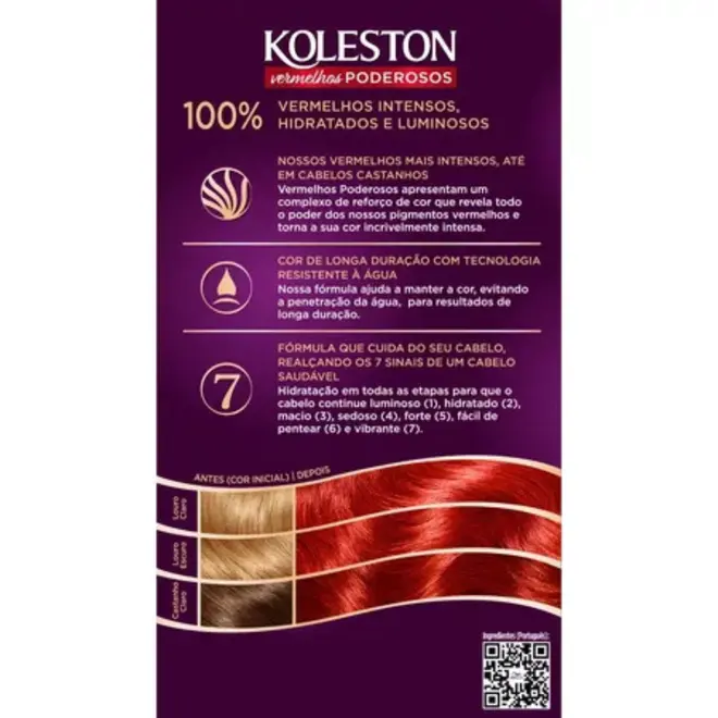 A Tintura Koleston 7744 Vermelho Super Intenso proporciona uma coloração intensa e duradoura, deixando os cabelos com cor fascinante e brilho revitalizado.