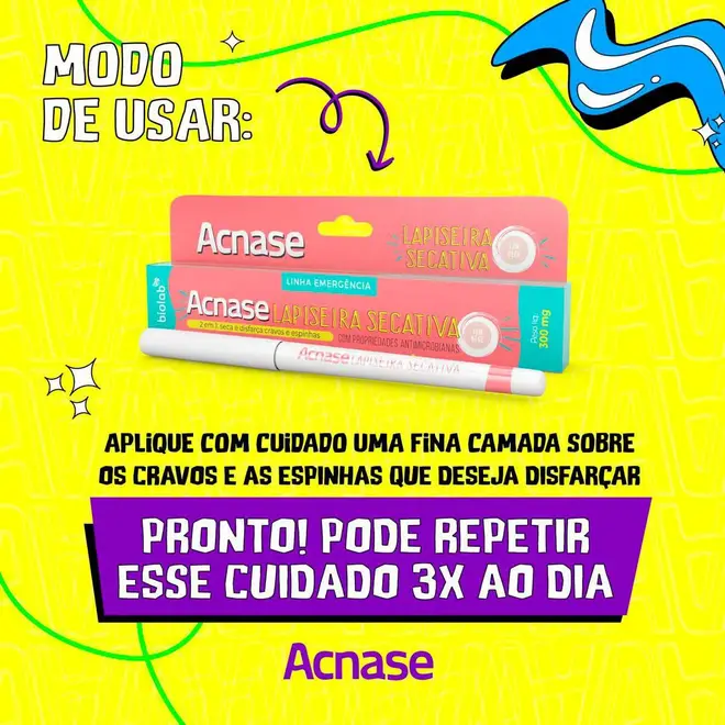 Com a pele limpa e seca, aplique a lapiseira sobre a acne inflamada.