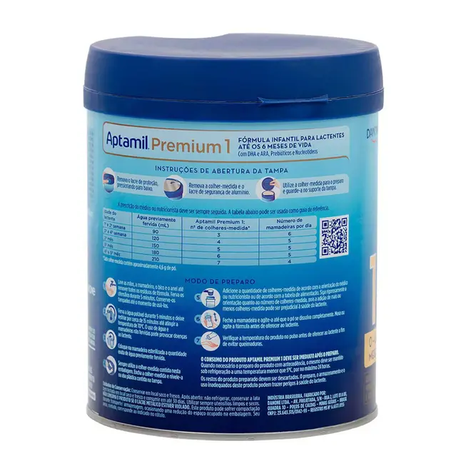 Produzida pela Danone, a Aptamil Premium 1 foi formulada com ingredientes cuidadosamente selecionados para atender às necessidades nutricionais dos primeiros meses de vida.