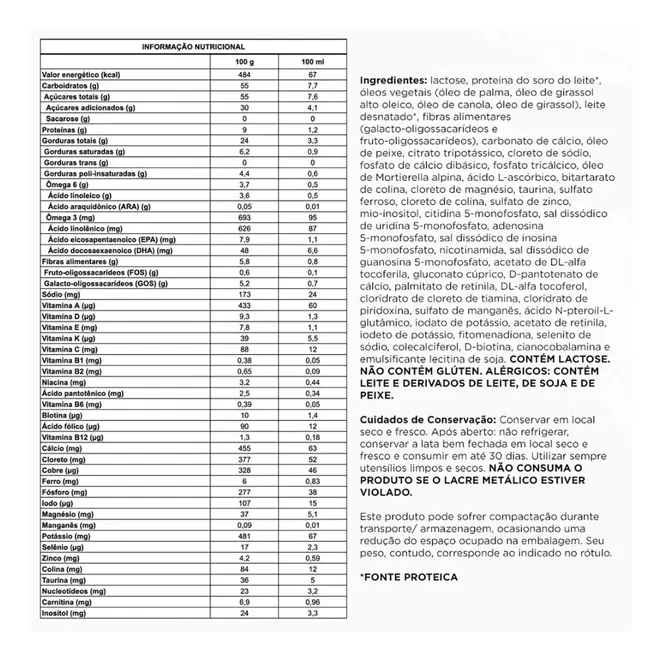 Contém DHA e ARA para desenvolvimento cerebral e visual