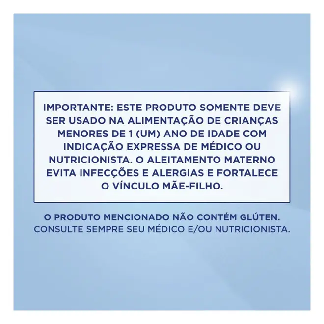 Indicado para lactentes de 0 a 6 meses, conforme orientação de médico ou nutricionista.