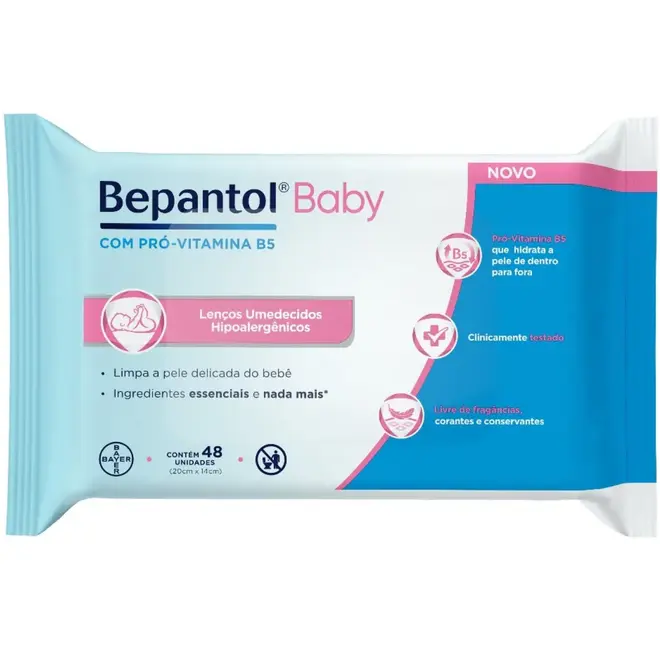 O Lenço Umedecido Bepantol Baby com 48 unidades foi desenvolvido para limpar delicadamente a pele do bebê durante as trocas de fralda, oferecendo cuidado e hidratação desde os primeiros dias de vida.
