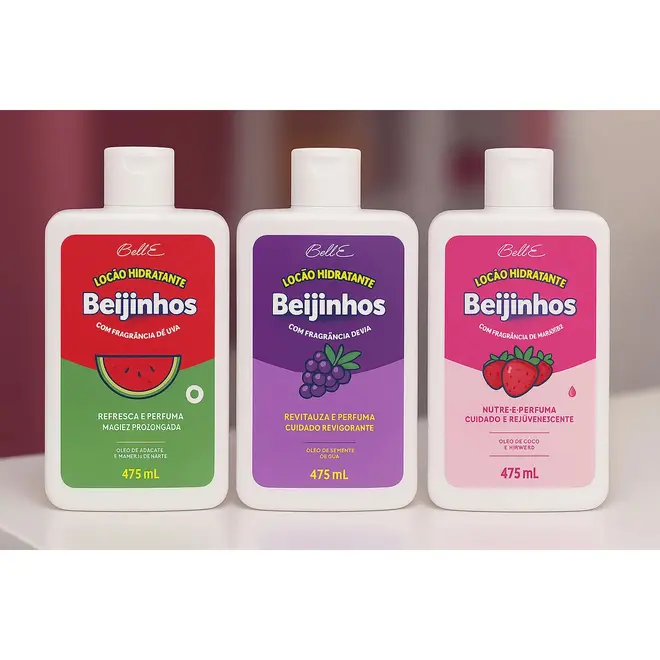 Com texturas leves, cheirinho delicioso de frutas e rápida absorção, as Loções Hidratantes Beijinhos hidratam profundamente, ajudando a manter a umidade e a suavidade, prevenindo o ressecamento. Além de fortalecer a barreira natural da pele, protegendo-a contra agressões externas, como poluição e radicais livres. A pele fica irresistivelmente macia e perfumada, sem deixar qualquer sensação pegajosa.