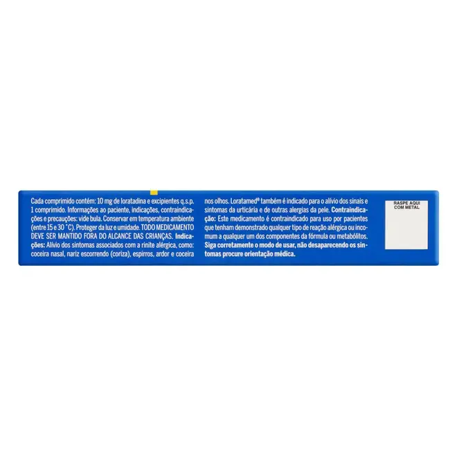 SE PERSISTIREM OS SINTOMAS, O MÉDICO DEVERÁ SER CONSULTADO. LORATAMED É UM MEDICAMENTO. SEU USO PODE TRAZER RISCOS. PROCURE O MÉDICO E O FARMACÊUTICO. LEIA A BULA.