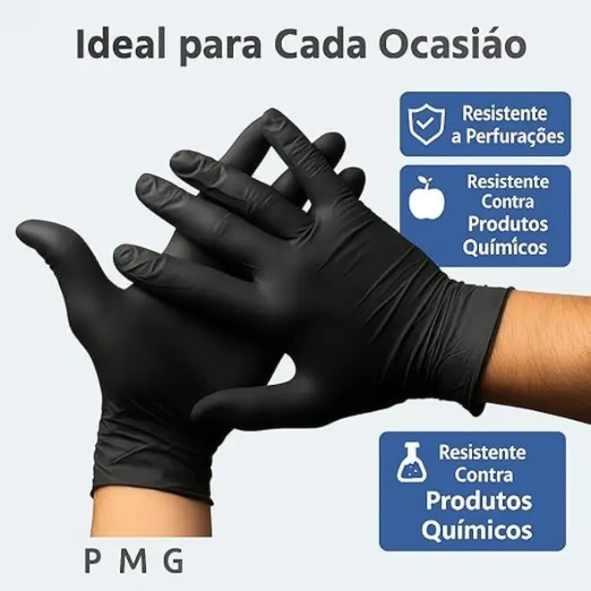 A Luva Nitrílica Preta Linha Premium/Supermax (tamanho M) é um equipamento de proteção individual (EPI) de alta qualidade, amplamente utilizado por sua resistência superior, conforto e estilo.