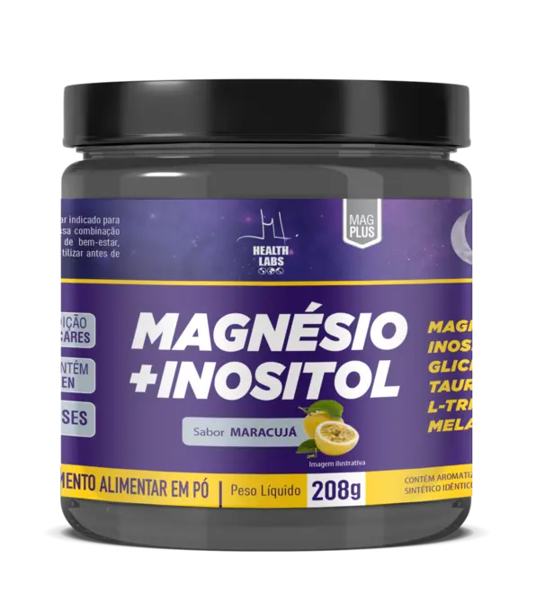 - Importante: A descrição acima se baseia em informações gerais de suplementos de magnésio com maracujá e inositol. Para obter detalhes específicos sobre o produto da Health Labs e confirmar a presença de outros ingredientes, como o inositol, é sempre recomendado consultar a embalagem ou a descrição oficial do fabricante.