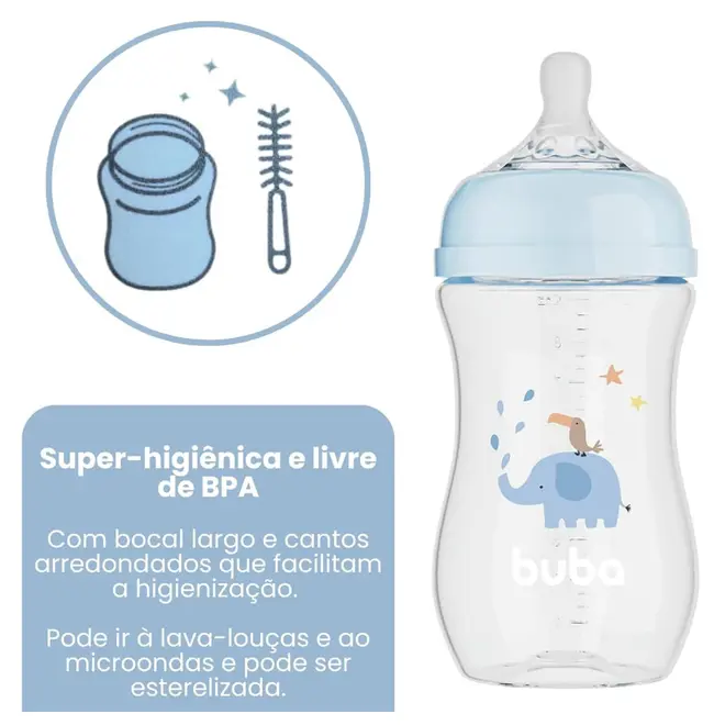 Mamadeira Buba Easy Flow Elefante Azul 270ml