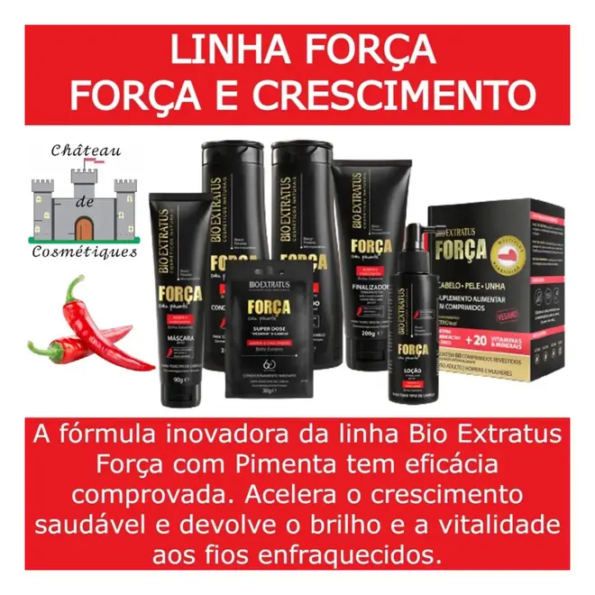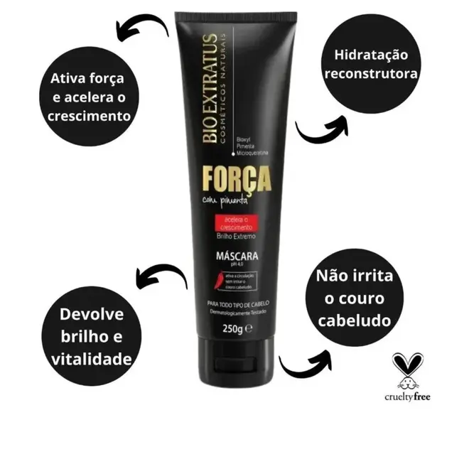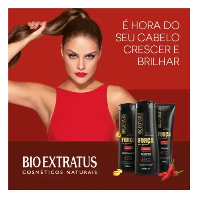A Máscara Capilar Bio Extratus Força com Pimenta 250g é um tratamento intensivo desenvolvido para fortalecer os fios e estimular o crescimento saudável.