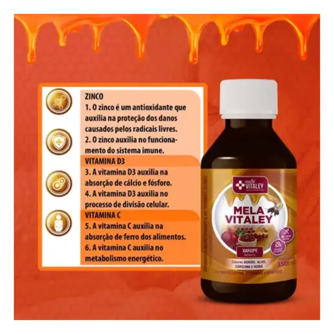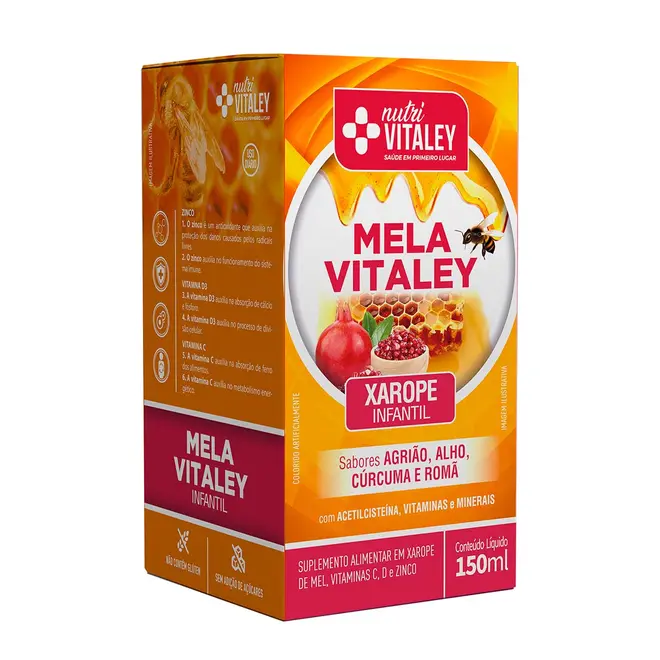 O Mela Vitaley Xarope Infantil é um suplemento alimentar em xarope formulado à base de mel, vitaminas, minerais e ingredientes naturais, desenvolvido especialmente para auxiliar no bem-estar das crianças.