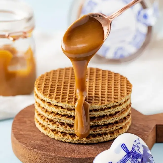 Stroopwafel é o autêntico waffle holandês, reconhecido por sua fina camada de massa e recheio inconfundível. Tradicional entre as comidas típicas da Holanda, ele é composto por duas camadas delicadas de biscoito recheadas com um creme que remete ao sabor do caramelo, criando uma combinação irresistível de textura e sabor.