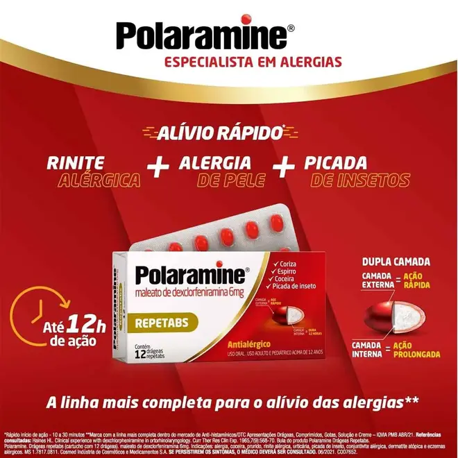 - Polaramine Repetabs 6mg Ação Prolongada 12 Comprimidos