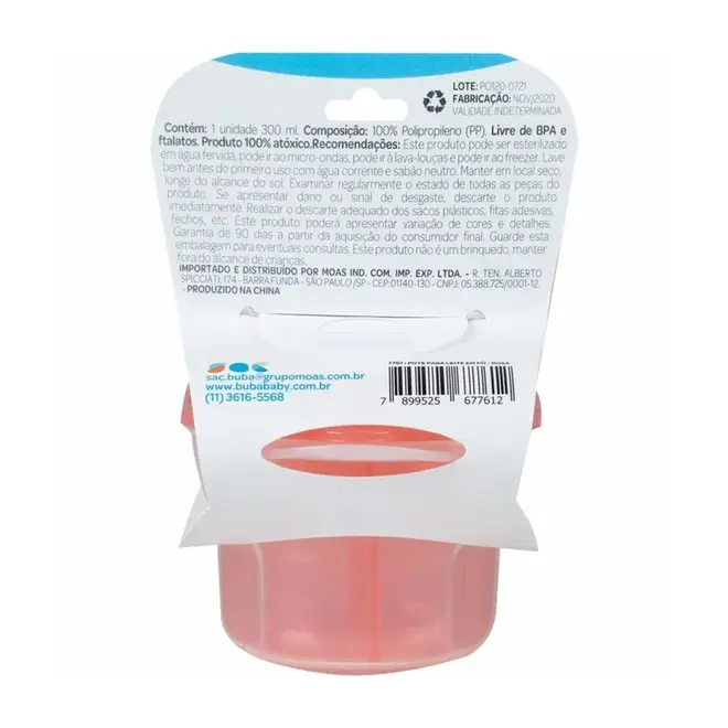 Porta Leite em Pó com Divisórias Removíveis Buba Rosa 300ml