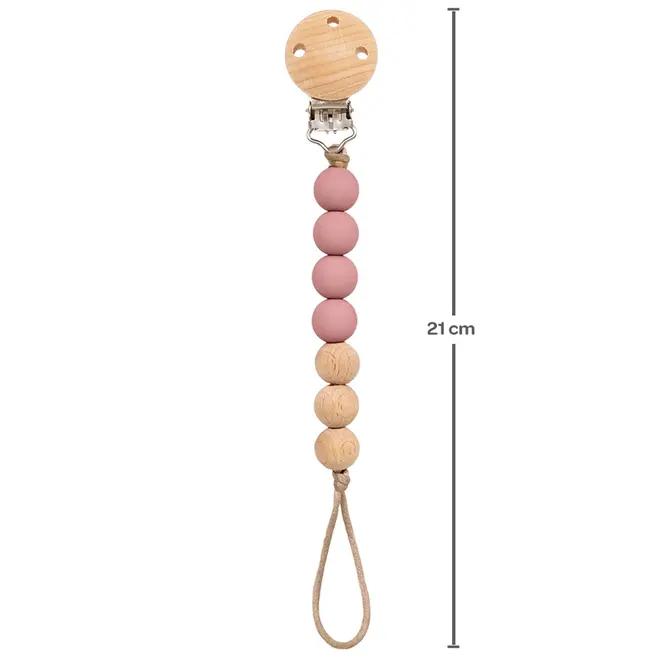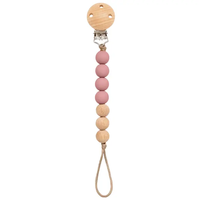 Prendedor de Chupeta em Silicone e Bambu Buba Rosa
