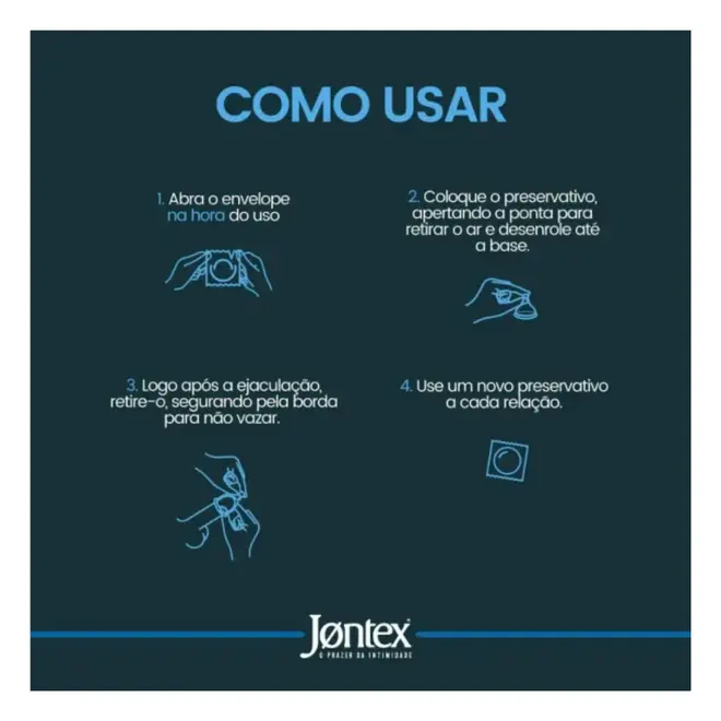 Os preservativos são lubrificados, opacos e possuem reservatório na ponta. Além disso, cada unidade é testada eletronicamente para garantir o mais alto padrão de qualidade e segurança.