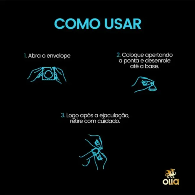 O envelope que contém o preservativo deve ser aberto pelo picote no sentido vertical e somente na hora do uso. Não utilizar objetos cortantes, afiados ou pontiagudos para abrir a embalagem.