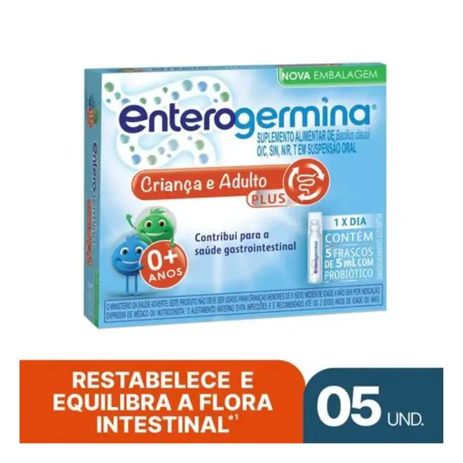 A Enterogermina Plus é um suplemento alimentar constituído por suspensão aquosa de esporos de Bacillus clausii, um microrganismo benéfico que contribui para a saúde gastrointestinal. Sua fórmula exclusiva auxilia no equilíbrio da flora intestinal, que pode ser afetada por diversos fatores do dia a dia.