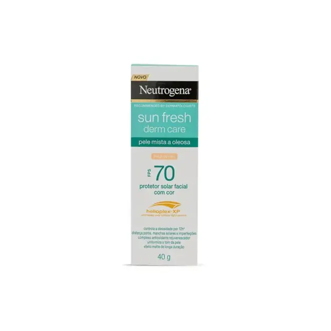 O Neutrogena Sun Fresh Derm Care FPS 70 é um protetor solar desenvolvido especialmente para o rosto, com textura leve, toque seco e com cor. Possui tecnologia Helioplex® XP que forma um escudo ultraleve e uniforme na pele. Ideal para peles mistas a oleosas, o produto protege contra raios UVA/UVB e luz visível, disfarçando manchas, poros e imperfeições. Além da proteção solar, possui ação antioxidante e rejuvenescedora, controlando a oleosidade da pele por até 12 horas.
