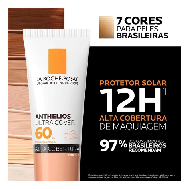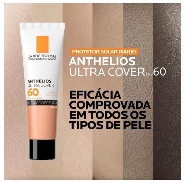 O Anthelios Ultra Cover da La Roche-Posay é o primeiro protetor solar com alta cobertura que combina a performance de uma base de maquiagem com uma proteção solar de amplo espectro. Desenvolvido no Brasil para as necessidades da pele brasileira, ele oferece uma cobertura imediata das imperfeições enquanto protege a pele contra os raios UVB, UVA e os danos causados pela luz visível.