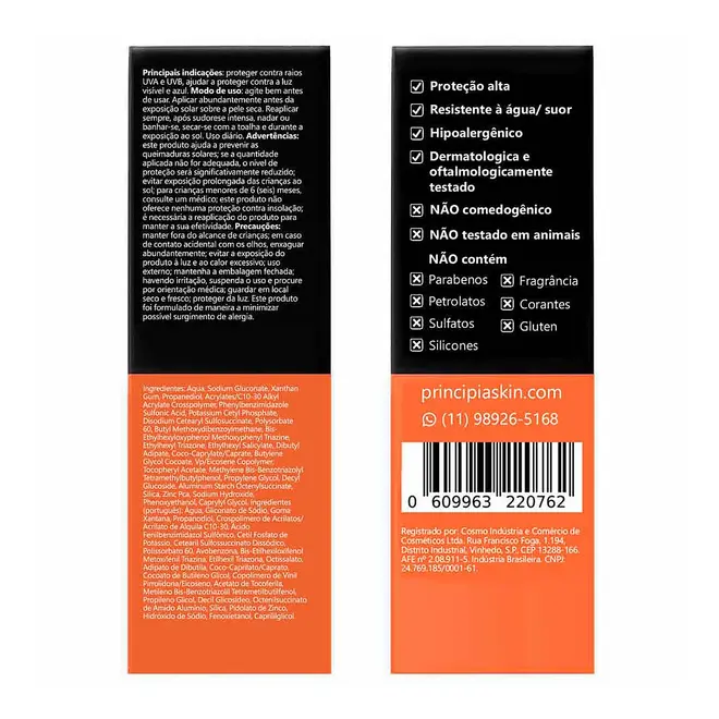 Estudo para Determinação do Fator de Proteção Solar (FPS): o produto apresentou FPS maior que 50 e foi considerado resistente a água e ao suor.