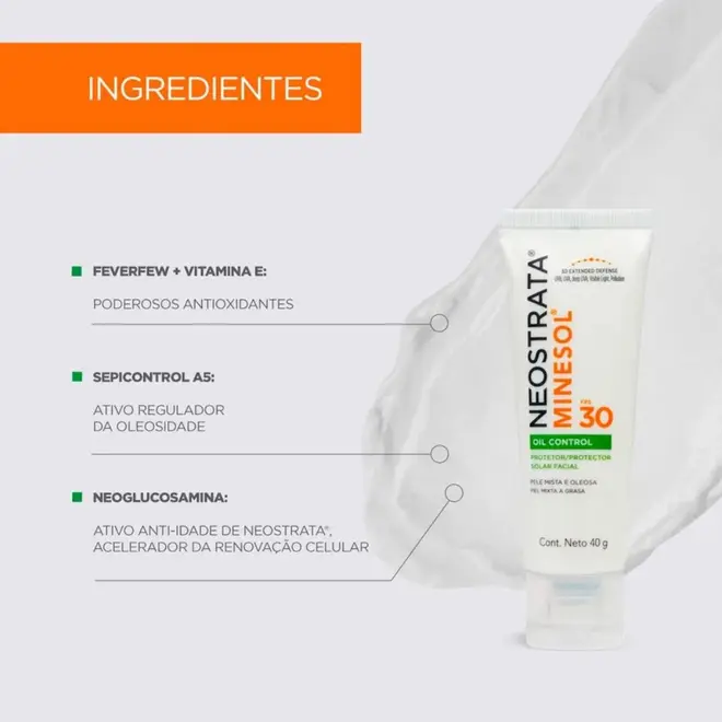 Protetor solar facial com Feverfew, Vitamina E e Neoglucosamina, oferece proteção avançada contra raios UVB, UVA, UVA longo, ajuda a proteger contra a luz visível e poluição enquanto corrige linhas finas, disfarça poros e uniformiza tom e textura da pele. Possui textura gel creme ultraleve que não deixa resíduos brancos, proporcionando 12 horas de controle ativo e redução da oleosidade.