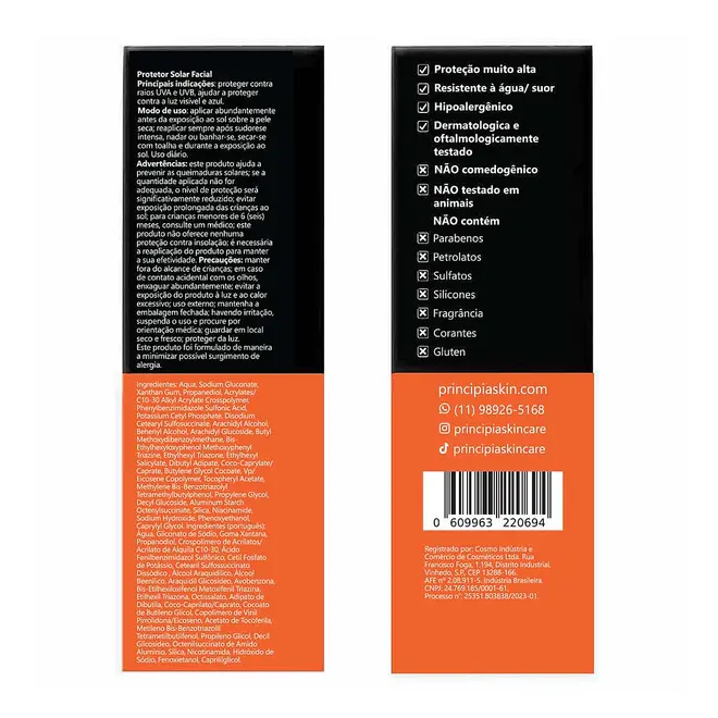 Estudo para Determinação do Fator de Proteção Solar (FPS): o produto apresentou FPS maior que 60 e foi considerado resistente a água e ao suor.